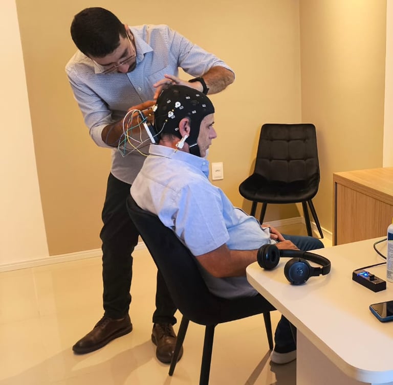 O Neurofeedback é uma técnica de treinamento cerebral não invasiva que utiliza a própria atividade elétrica do cérebro para promover autorregulação e equilíbrio neurofisiológico. Durante a sessão, sensores captam as ondas cerebrais em tempo real e o paciente recebe feedbacks visuais e sonoros, aprendendo, de forma gradual, a ajustar seu funcionamento cerebral.